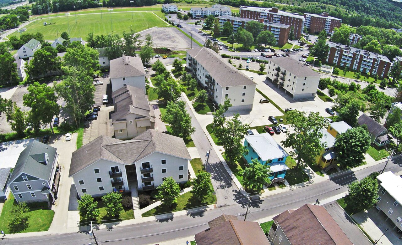 Spectacular campus skyline views. Recently built three bedroom and two bedroom apartments also on Ohio University‘s East Green of the Athens campus. Vibrant student neighborhood. The private balcony is perfect for entertaining. Short walk to uptown shopping, restaurants, nightlife and campus. Since the entire building is two and three bedroom apartments, we’ve also accommodated several larger-sized groups wanting to live ‘together’. Garbage service included and on-site parking is available. Residents pay all other utilities (Water/Sewer, Electric, Cable, Internet, Phone).